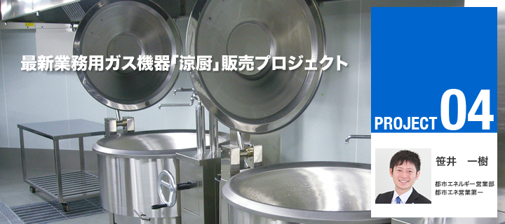 そこで厨房機器の表面温度を65℃以下に抑え、排熱を集中排気するなど極限まで暑さの原因を排除。結果、ガスを用いながらも涼しく快適な環境で調理できる「涼厨」が生まれました。電化厨房が涼しい・クリーンというPRを打ち出す中で、全国のガス事業者でネットワークを組み、ガス厨房の切り札として約4年前から販売促進活動を進めています。