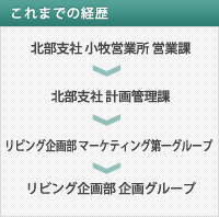 現在は、ガス機器の販売、修理や増改築などに伴うガス工事の申し込みを受ける販売店「エネドゥ」の販売施策を立案しています。これまで携わった管理業務での経験を通して、自分の仕事のあり方が多くの人に影響を与えると、身をもって感じました。今でも、新人時代に先輩から受けた指摘に気付かされた思いがそのまま生きています。かつて一緒に働いた営業担当や、現在関わっている販売員にも共通して言えますが、皆さんには各々の仕事の状況が当然あるわけで、形式的な施策を管理側が講じても、いい結果は望めません。それぞれの仕事状況に応じた適切な施策を立て、ていねいに仕事の道筋を導き出してあげることが重要なのです。異動を経験し、自分を取り巻く人々が変わっても、相手のためを思う選択肢を可能な限り準備することは、仕事をする上での大切な信条となっています。
