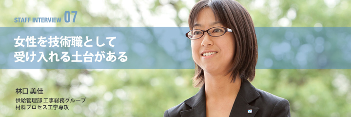 現在までに3度の異動を経験しています。現在の工事総務グループは、育児休業復職後の職場です。周りには同じように子育てしながら頑張っている女性がおり、子供を産んでも働き続けやすい環境にあります。もちろん、仕事の質は落とさないために、今まで80%〜100%の力発揮だったのを100%〜120%にして、密度濃く、頑張っていますよ。